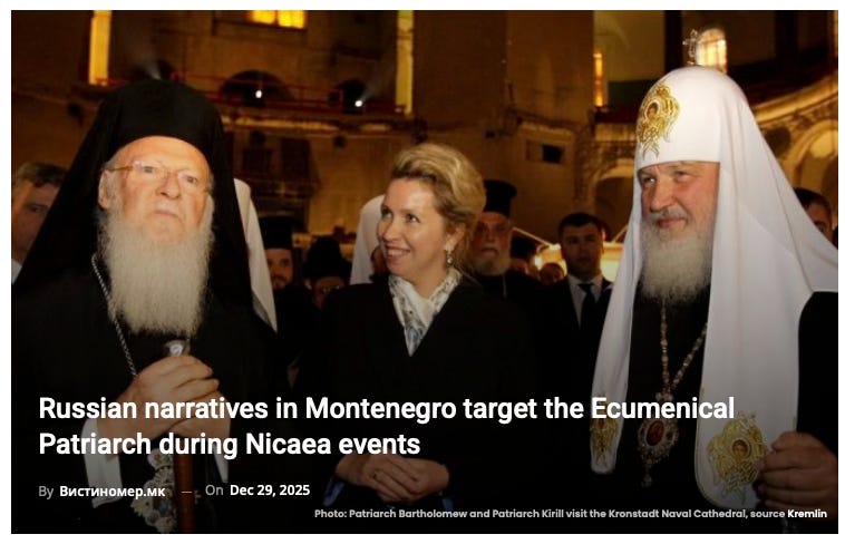 In Montenegro, where the Serbian Orthodox Church (SOC) has long held a strong position, pro-Russian and pro-Serbian outlets have, over the years, systematically used symbolic gestures of ecumenical rapprochement between Rome and the Phanar to cast suspicion on the Ecumenical Patriarch. The momentum created by the Nicaea anniversary celebrations thus became a prime target for importing Russia-friendly narratives aimed at sustaining disunity among the Orthodox.